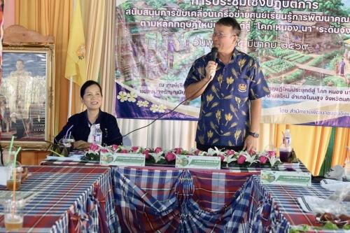นายจิรเดช พงษ์ประสิทธิ์ นายอำเภอโนนสูง เป็นประธานในพิธีเปิดโครงการ โดยมี นางกนกรัชต์ วงษ์กาฬสินธุ์ พัฒนาการจังหวัดนครราชสีมา ให้เกียรติพบปะให้ความรู้แก่ผู้เข้าร่วมโครงการ เพื่อเน้นย้ำถึงเป้าหมายการสร้างเครือข่ายศูนย์เรียนรู้ฯ ให้มีศักยภาพและเกิดผลสัมฤทธิ์ที่เป็นรูปธรรม